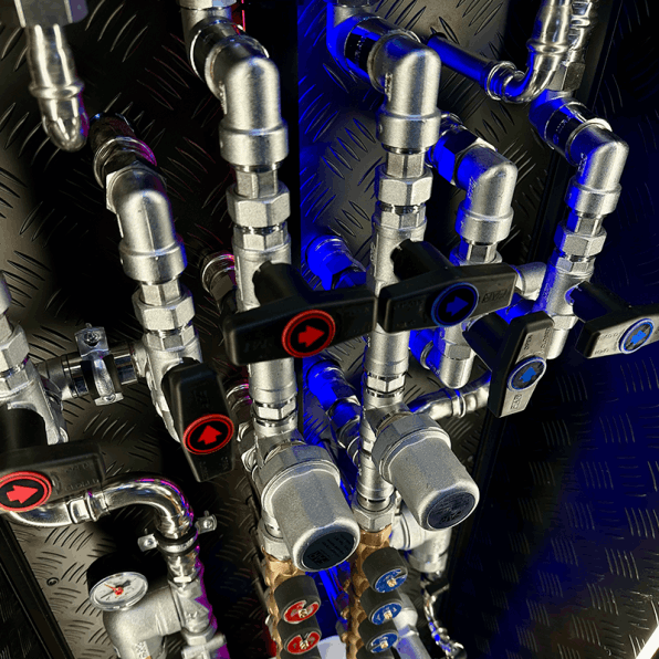 Монтаж коллекторов для равномерного распределения давления и удобного перекрытия каждой линии.